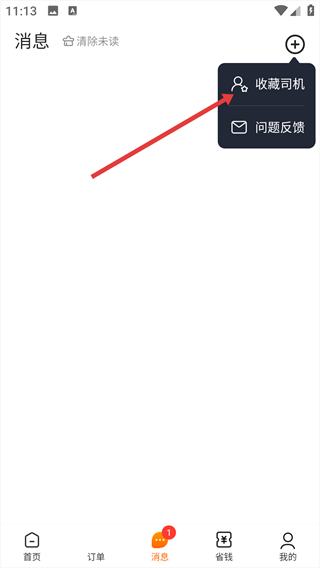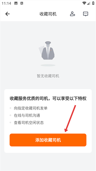2、在展开的菜单中选择【收藏司机】选项,进入收藏司机管理页面。