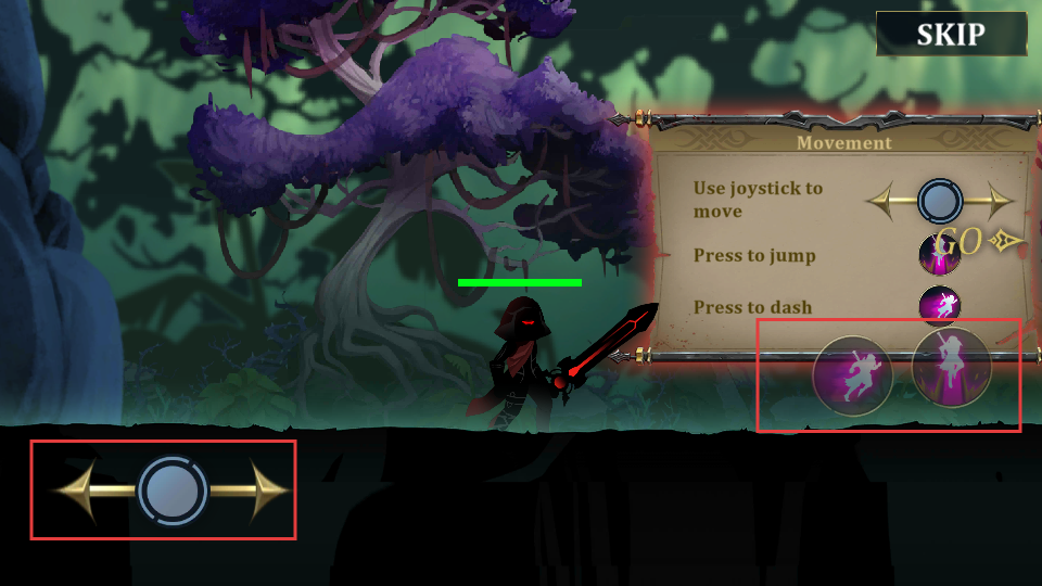 1、用左侧摇杆移动角色,点击跳跃、冲刺按钮,操控角色在场景中行动。