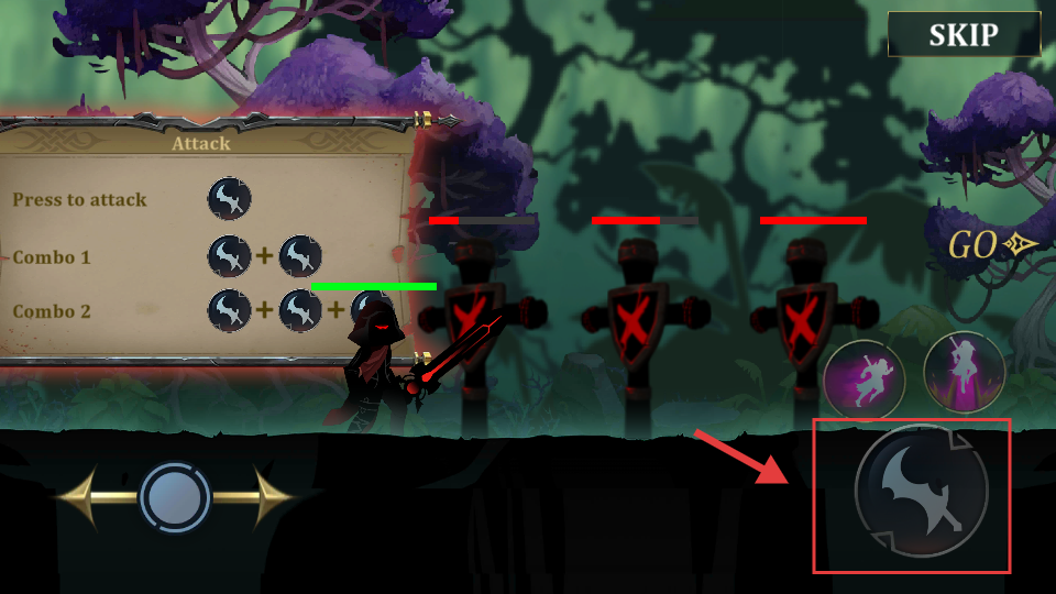2、按下攻击按钮进行攻击,也可按“攻击+攻击”等组合键释放连击。