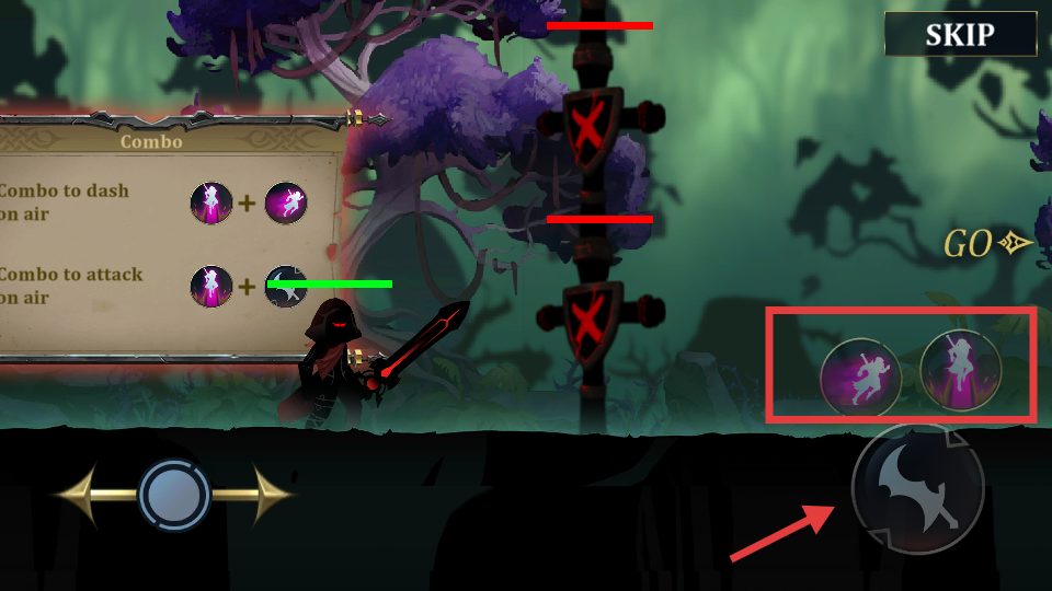 3、在空中时,按“冲刺+冲刺”“冲刺+攻击”组合键,释放空中连招。