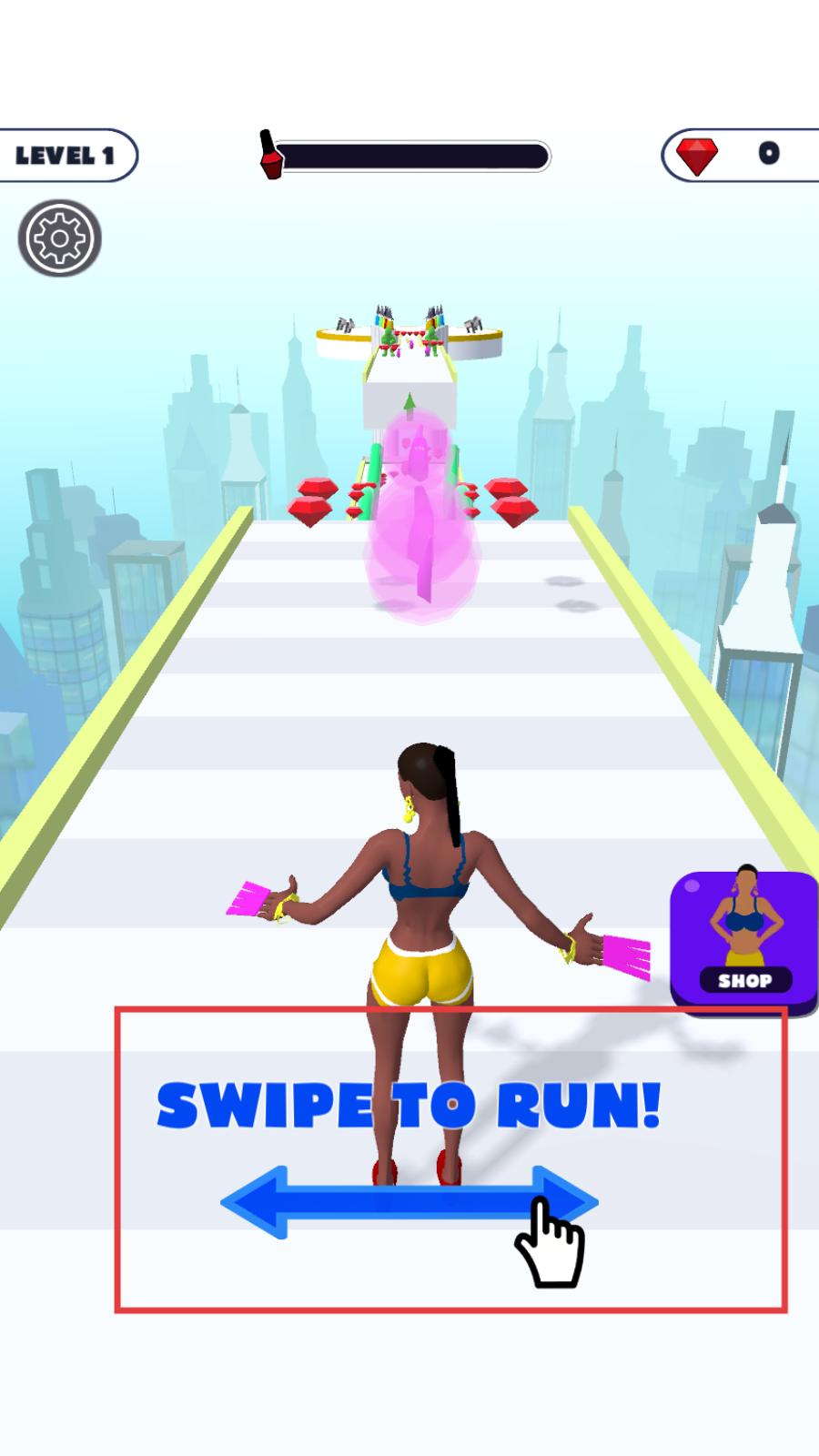 1、按照提示【SWIPETORUN!】,滑动屏幕控制角色开始奔跑。