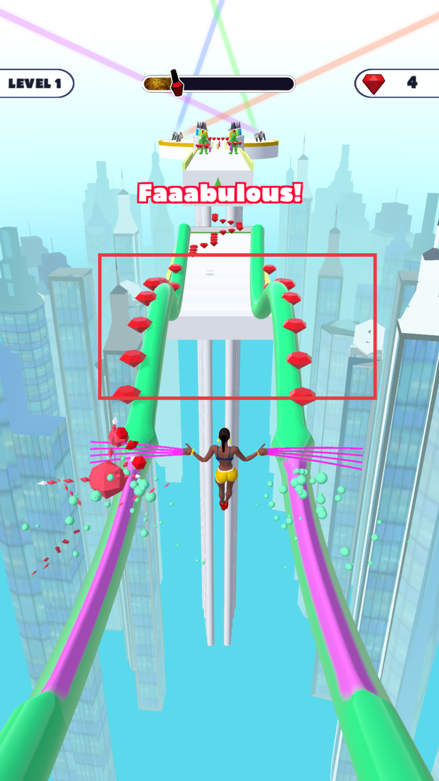 2、在滑道上,尽量多收集红色钻石,积累分数。