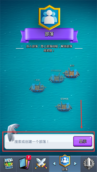1、在部落界面找到【搜索或创建一个部落】输入框,点击右侧【显示】按钮,即可查看可加入的部落列表,开启部落选择流程。