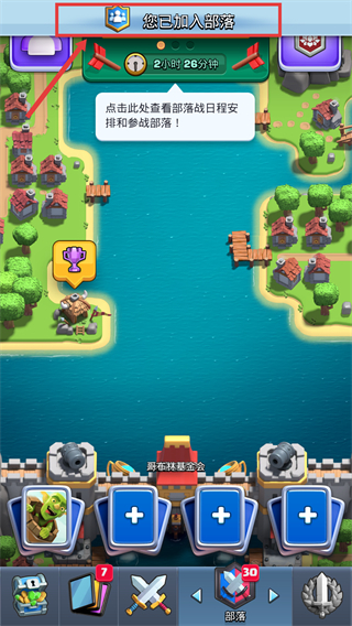 4、成功加入部落后,界面会显示【您已加入部落】提示,此时可点击上方提示区域,查看部落战日程安排及参战部落信息。