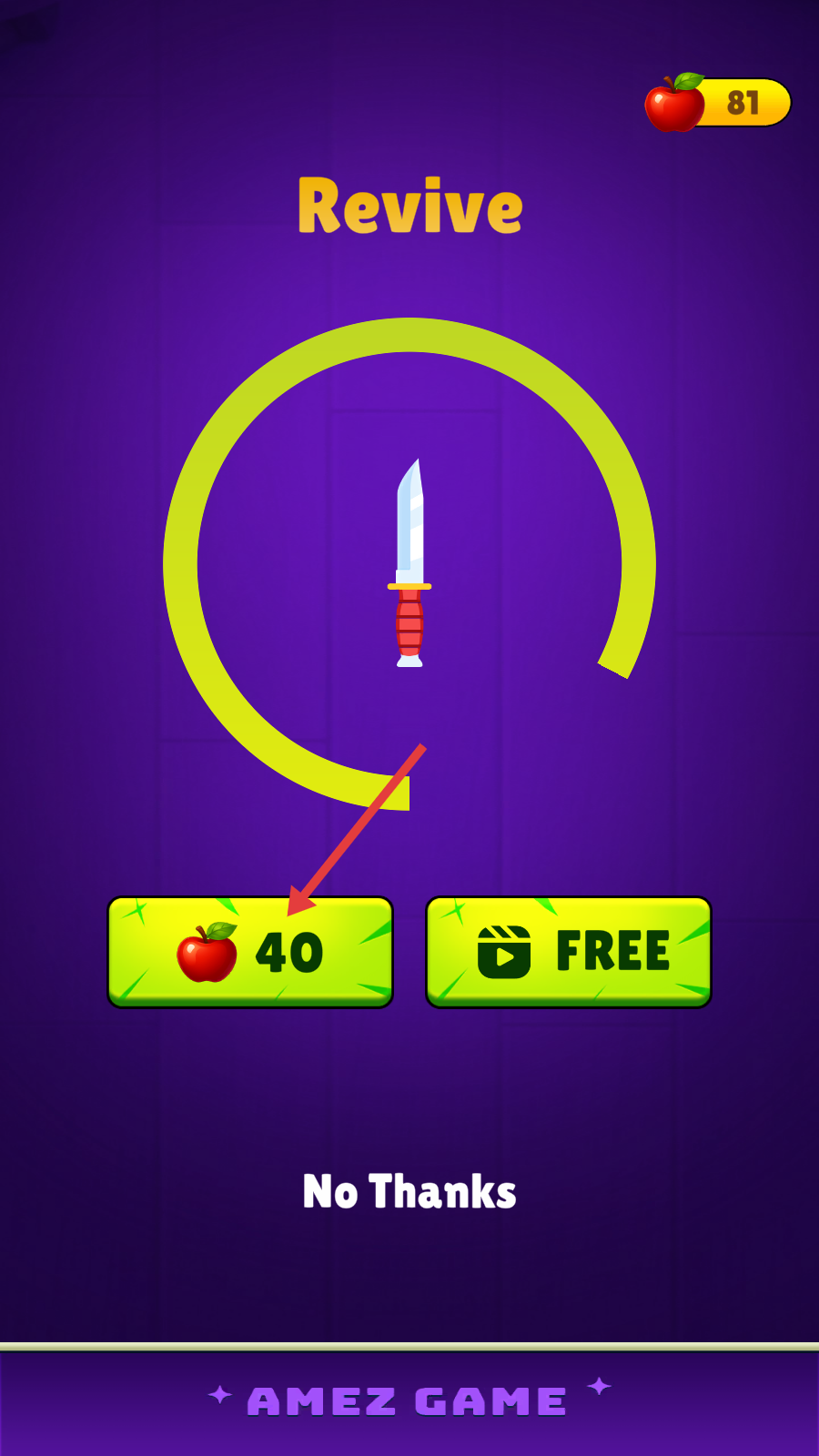 4、可通过消耗【40】个苹果或观看视频复活。