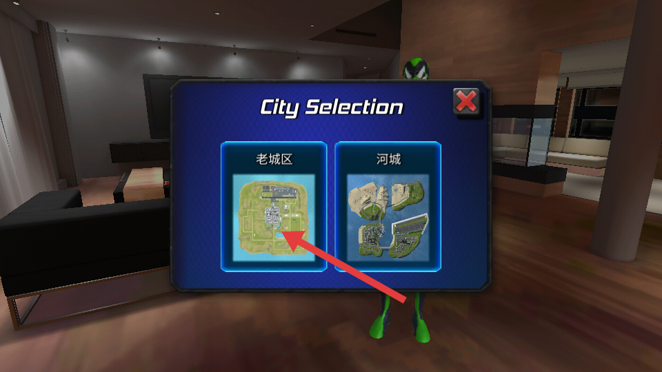 2、选择【老城区】,进入该城市地图,开始城市探索之旅。