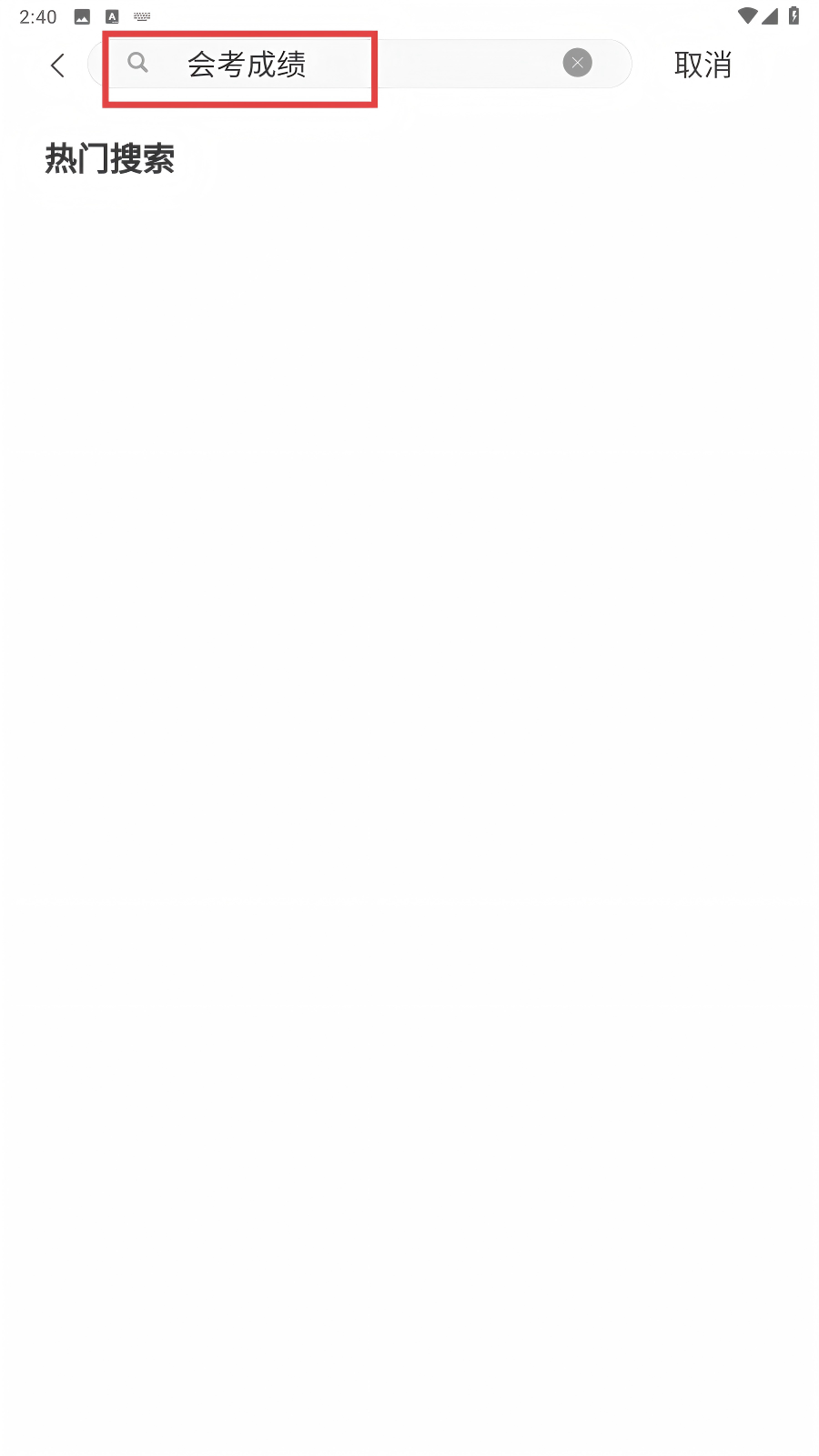 2、在【搜索栏】输入【会考成绩】,精准定位相关查询信息,找资料不用再东找西找啦。