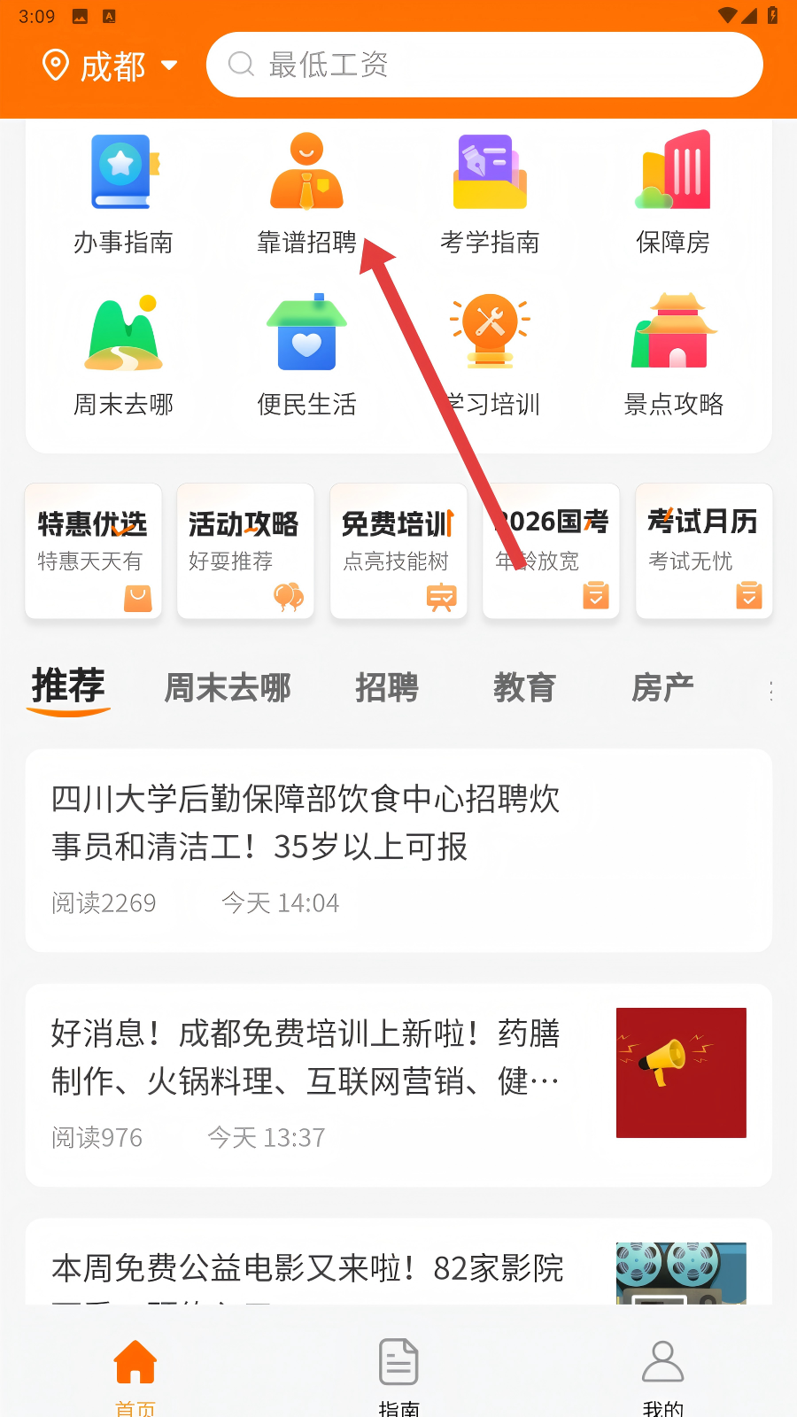 1、打开本地宝,点击【靠谱招聘】图标,进入招聘板块,踏入找工作之旅哦。