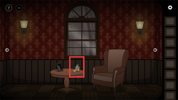 1、在初始场景中,收集红色框内的酒瓶与酒杯,作为后续解谜的道具。