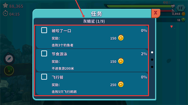 4、查看任务界面的【被咬了一口】-【节食游泳】-【飞行餐】任务,按要求完成获取对应奖励。