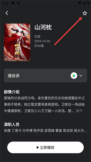 2、在影视详情页,点击右上角的星星形状收藏按钮,完成该影视内容的收藏操作。