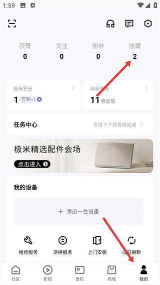 3、完成收藏后,进入“我的”页面,找到“收藏”选项。