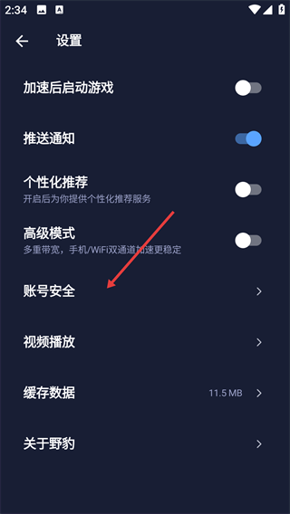 2、选择“账号安全”选项,进入账号安全相关操作页面。