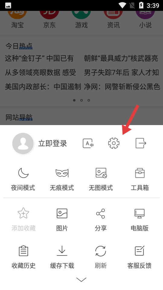 2、在弹出的菜单中,点击齿轮形状的【设置】图标。