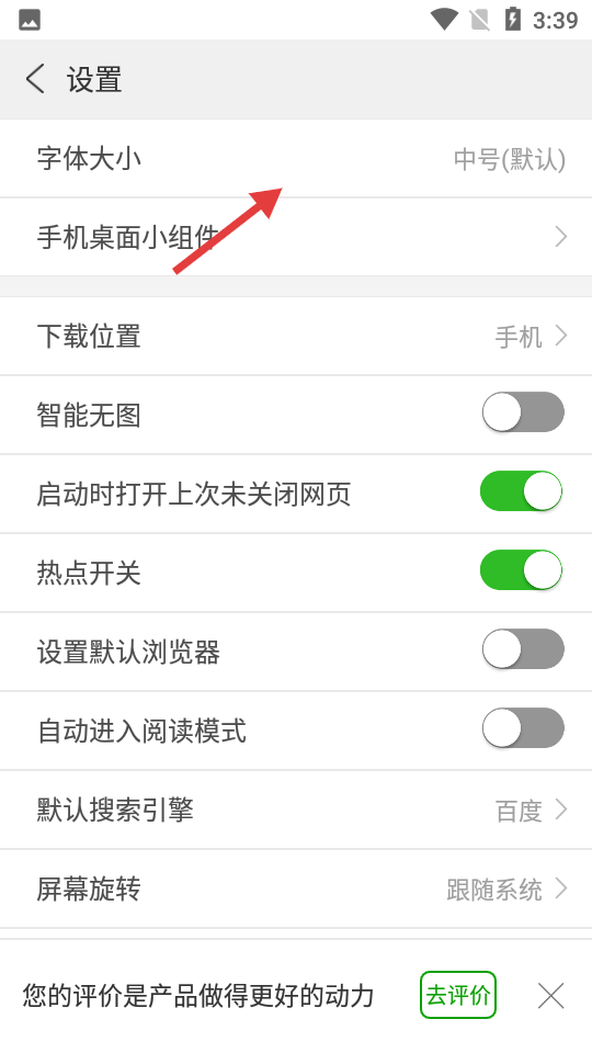 3、进入设置页面后,点击【字体大小】选项。