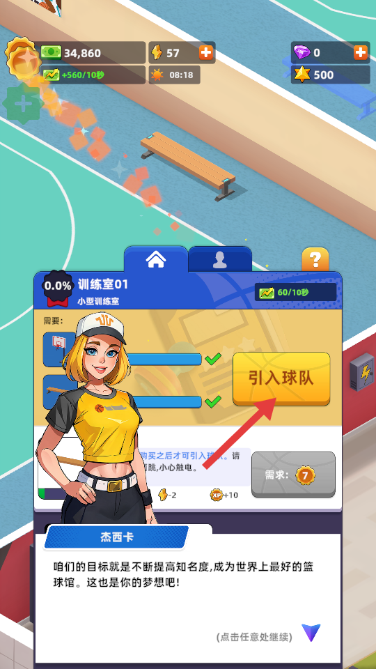 3、点击【引入球队】,推进篮球馆建设,提升知名度。
