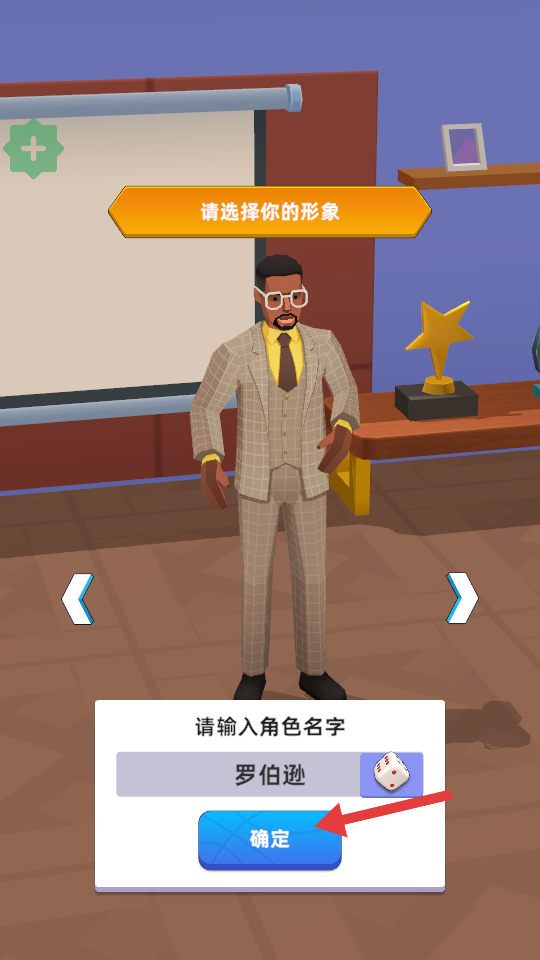 1、选择形象并输入角色名字后点击【确定】,开启游戏之旅。
