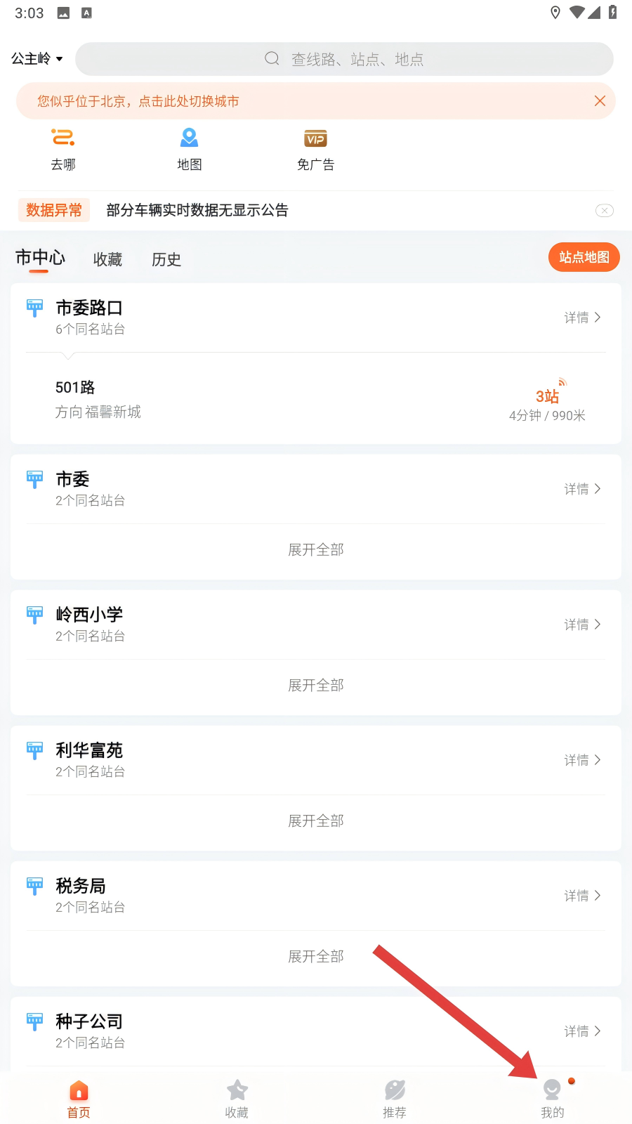 1、在【掌上公交】软件,我们点击右下角【我的】,进入个人中心,开启更换头像的操作流程吧。