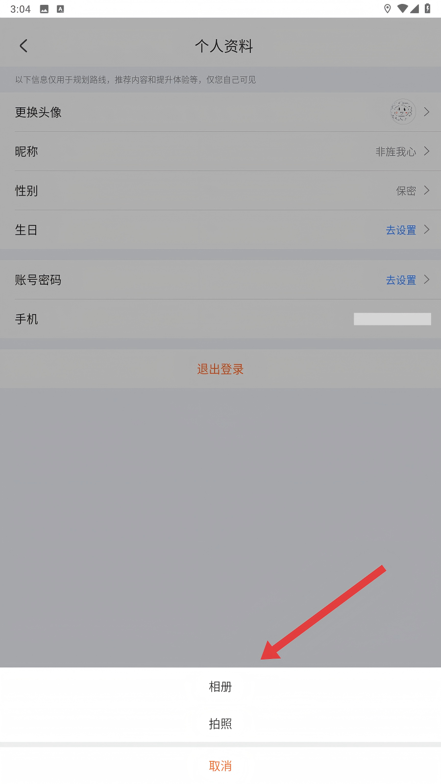 4、点击后,我们可选择【相册】或【拍照】来更换头像,选好后就能拥有新头像啦。