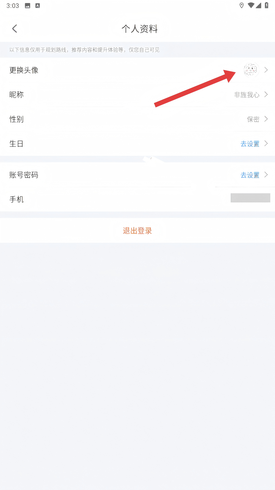 3、进入个人资料后,我们点击【更换头像】选项,准备挑选新头像啦。