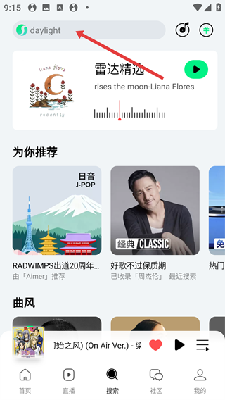 1、打开QQ音乐App,我们点击上方的【输入框】,准备输入关键词呢。
