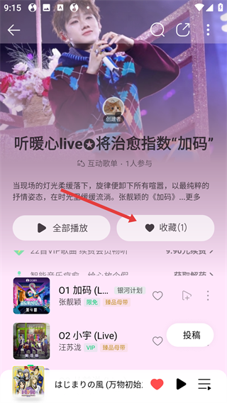 4、在歌单详情页,点击【收藏】按钮保存该歌单啦。