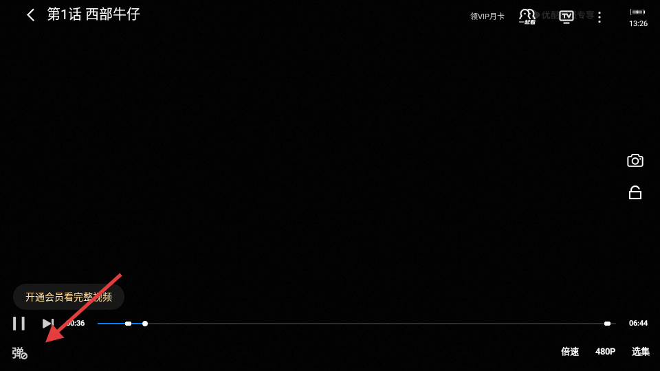 3、在全屏播放界面,点击左下角的“弹”字按钮,开启弹幕功能。