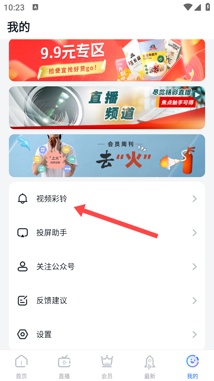 3、在【我的】页面中,找到并点击【视频彩铃】选项,进入视频彩铃专区。