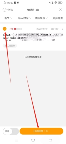 2、在这里选择要打印的题目之后可以点击已选题目。