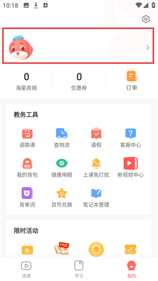 1、在课程界面底部点击【我的】按钮,进入个人中心页面。
