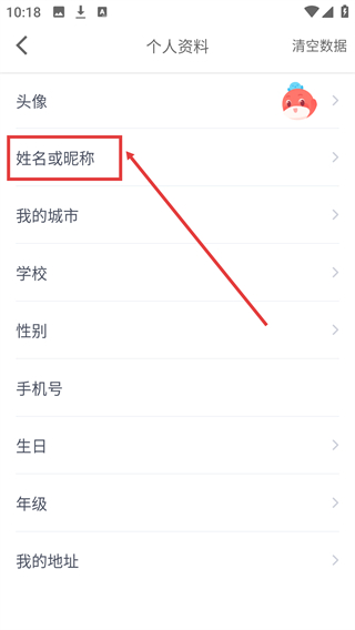 3、在个人资料页面,选择【姓名或昵称】选项,可进入昵称编辑界面。