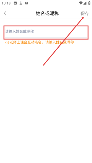 4、进入姓名或昵称编辑页面,在输入框中填写内容后,点击右上角【保存】按钮即可完成昵称设置。