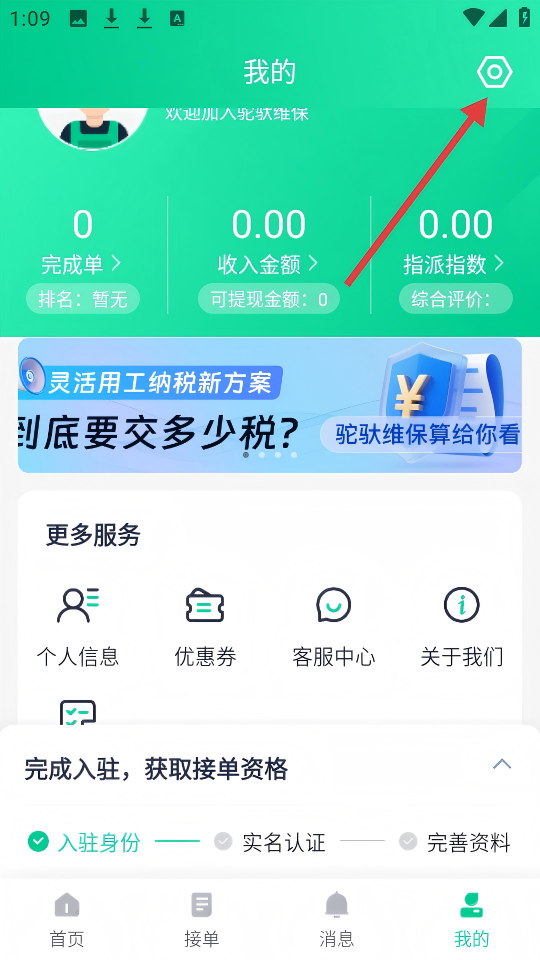 1、在驼驮师傅首页,点击右下角【我的】按钮,可进入个人中心页面。