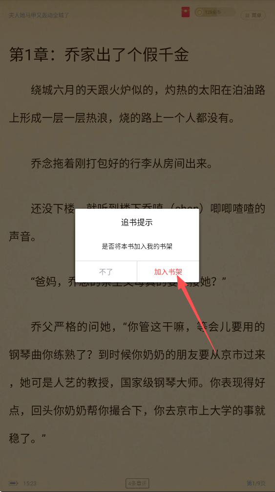 4、这时点击【加入书架】按钮,就能把这本小说成功放进书架,方便后续随时阅读啦。