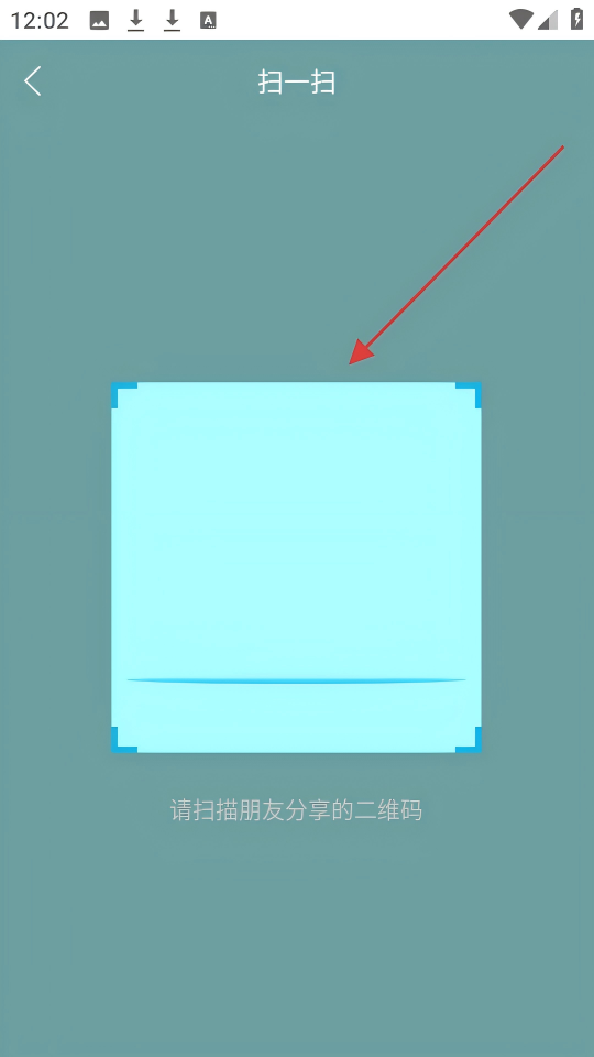 4、在【扫一扫】页面,将朋友分享的二维码放入扫描框内进行扫描。
