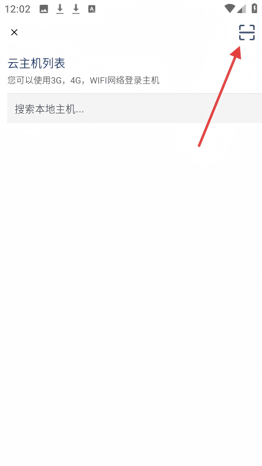 3、在【云主机列表】页面,点击右上角的扫码图标,进行主机相关扫码操作。