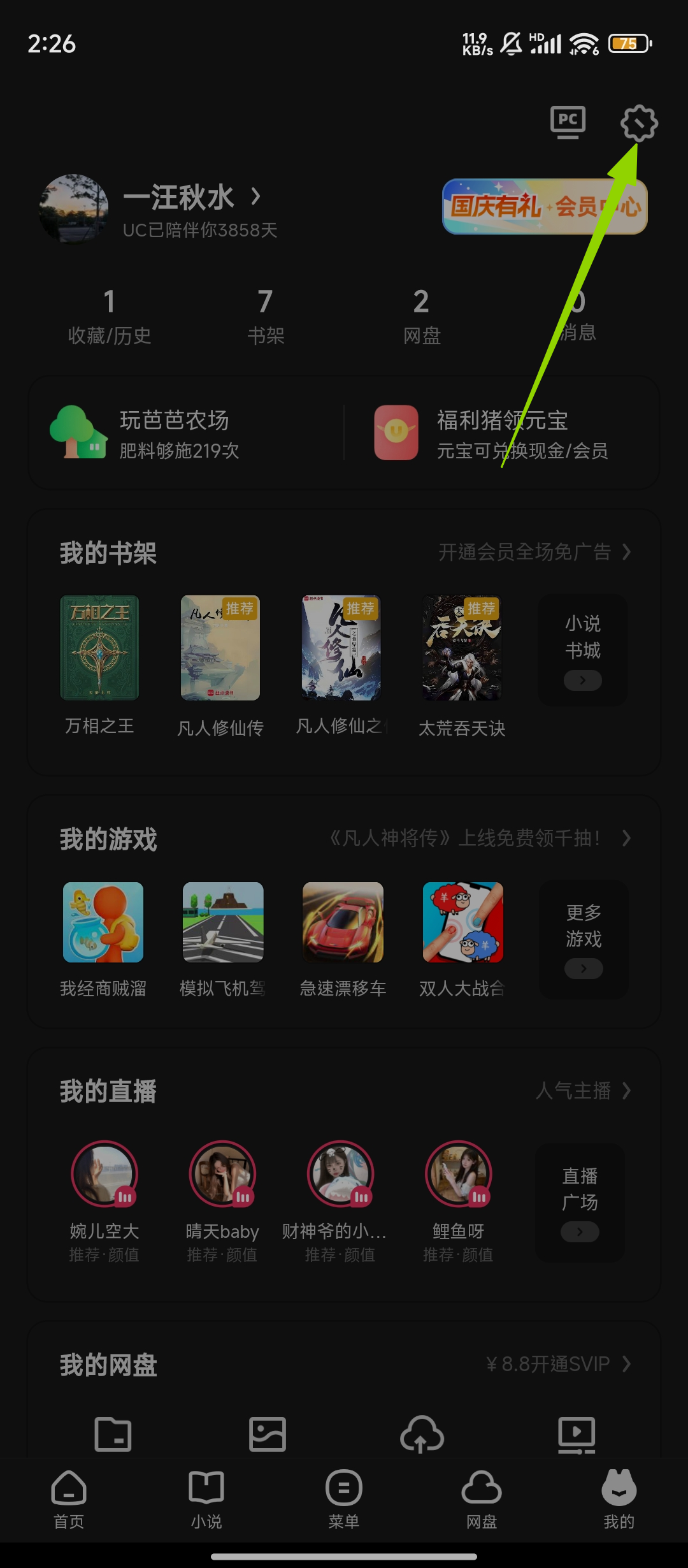 1、打开【UC浏览器】,我们点击右下角【我的】选项,为开启极速模式做准备呢。