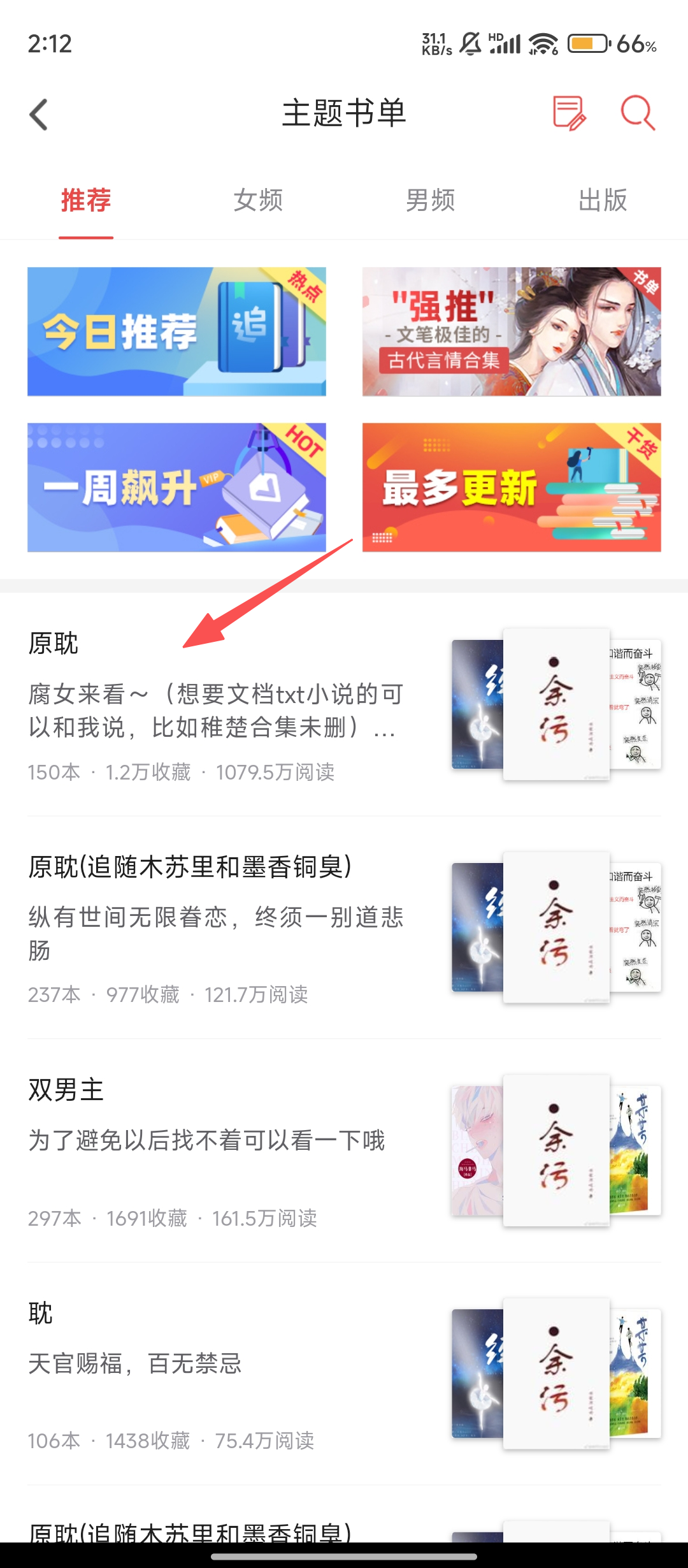 3、到【主题书单】页面后,挑选像【原耽】这类感兴趣的书单分类,点击进入详情。