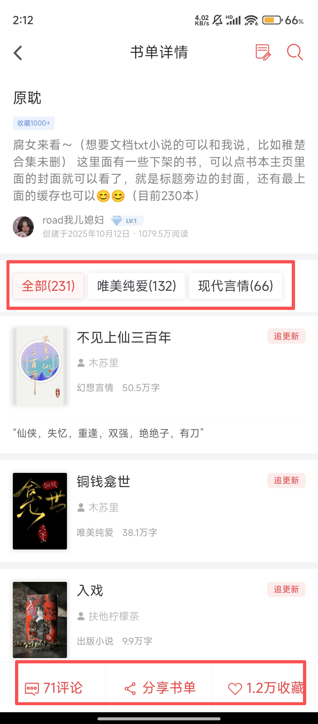 4、进入书单详情页,就能查看书单里的书籍、【评论】、【分享书单】、【收藏】等内容啦。