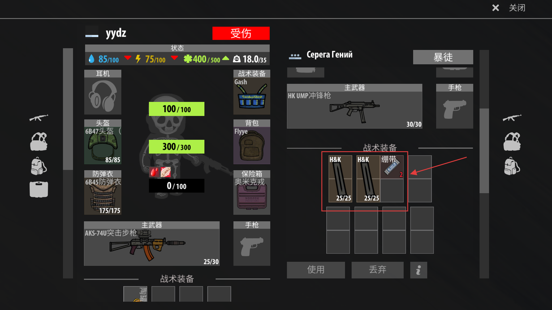 3、在角色界面确认战术装备栏有足够【H&K弹匣】和【绷带】,保证战斗时的物资供给。