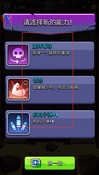4、从【旋转毒球】等能力中选择其一,获取新技能,增强角色的战斗能力。