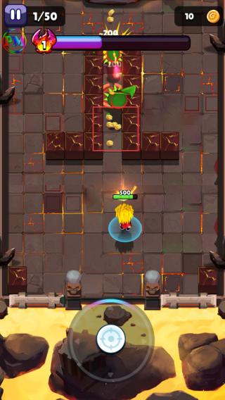 1、使用摇杆操控角色移动,前往下一个房间,推进当前关卡的进程。