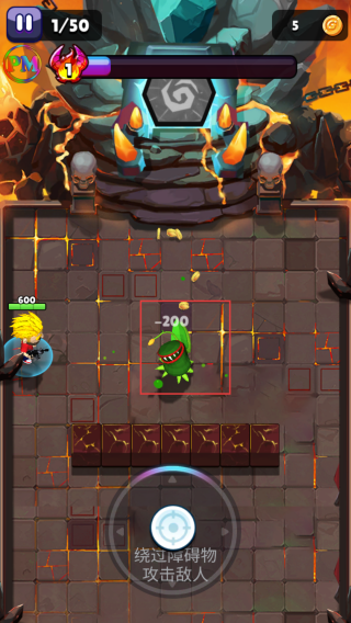 2、操控角色绕过障碍物,向敌人发起攻击,削减其生命值,推进战斗进程。