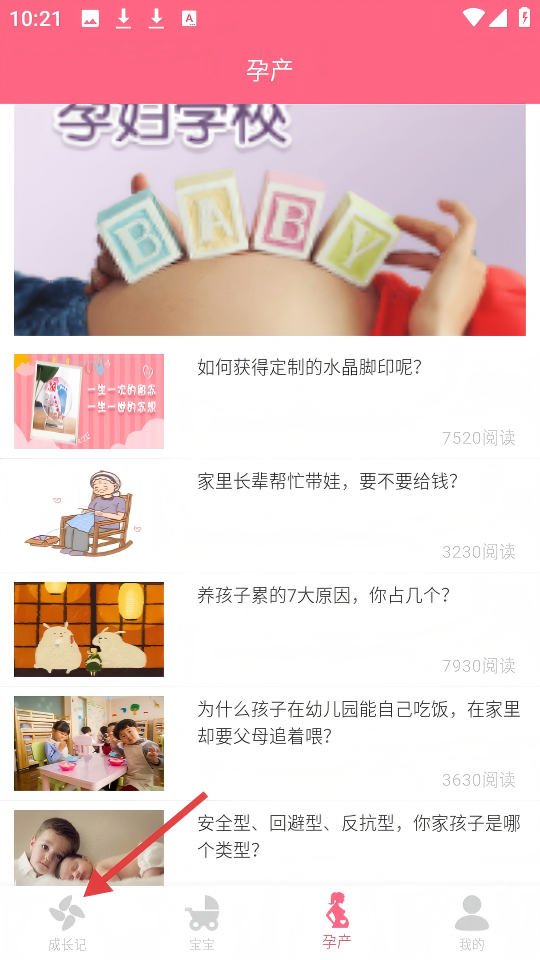 1、进入软件,点击底部【成长记】选项,进入成长记页面。