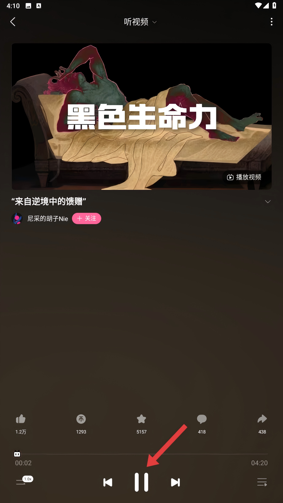4、在听视频模式下,我们可以点击页面下方的暂停按键,轻松控制音频的播放或暂停状态哦。
