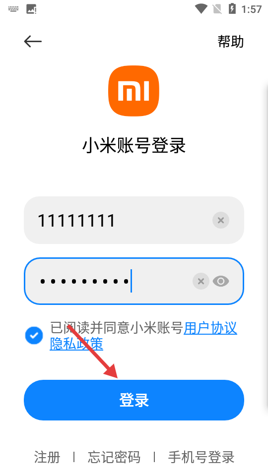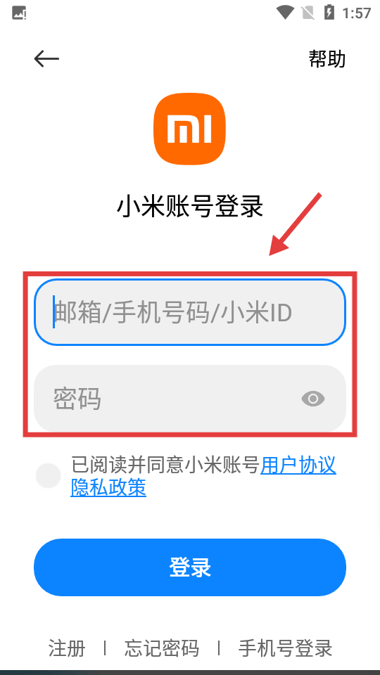 3、输入邮箱/手机号码/小米ID和密码。
