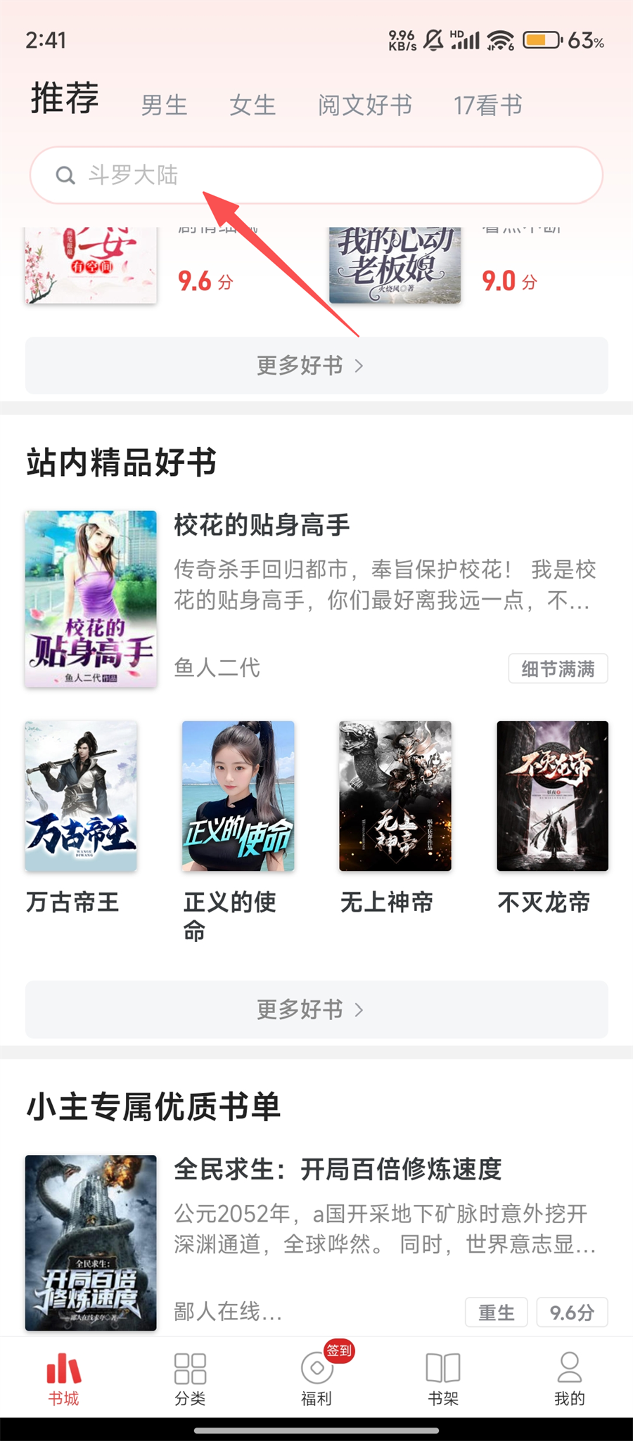 1、打开追书神器,点击搜索框,准备输入关键词哦。