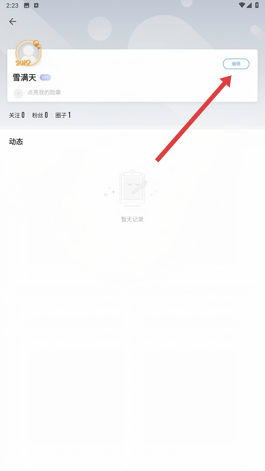 2、进入资料界面后,点击【编辑】进入修改个人资料的界面哦。