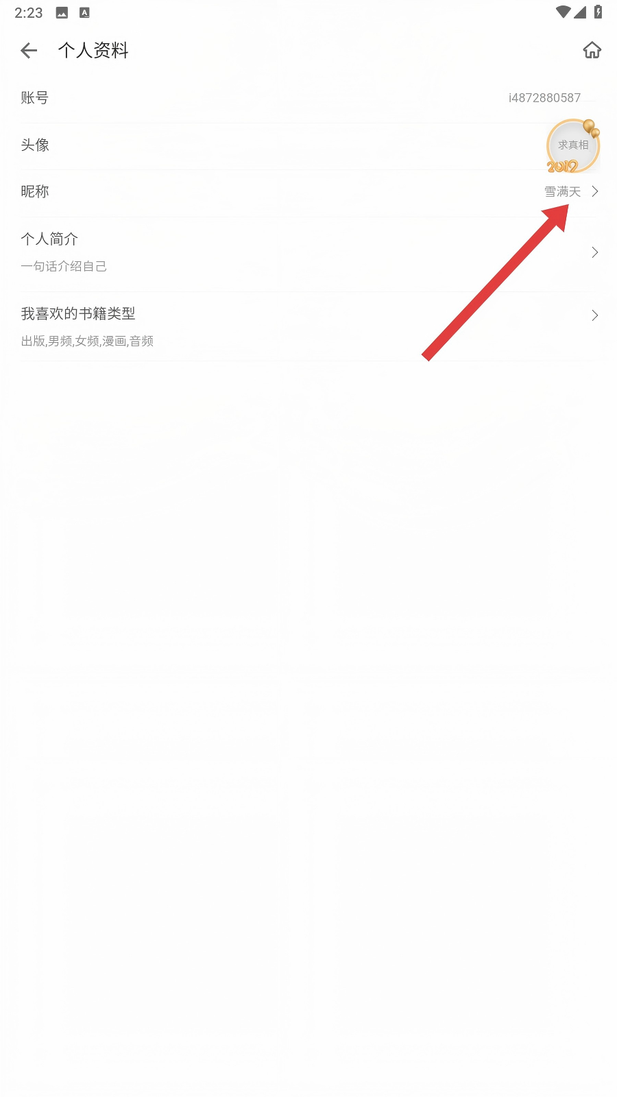 3、在【个人资料】中,点击【昵称】的区域,要改动昵称啦。