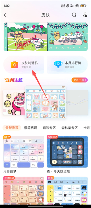 2、进入皮肤页面后,能看到【皮肤制造机】选项,点击它就能定制专属于自己的输入法皮肤啦。